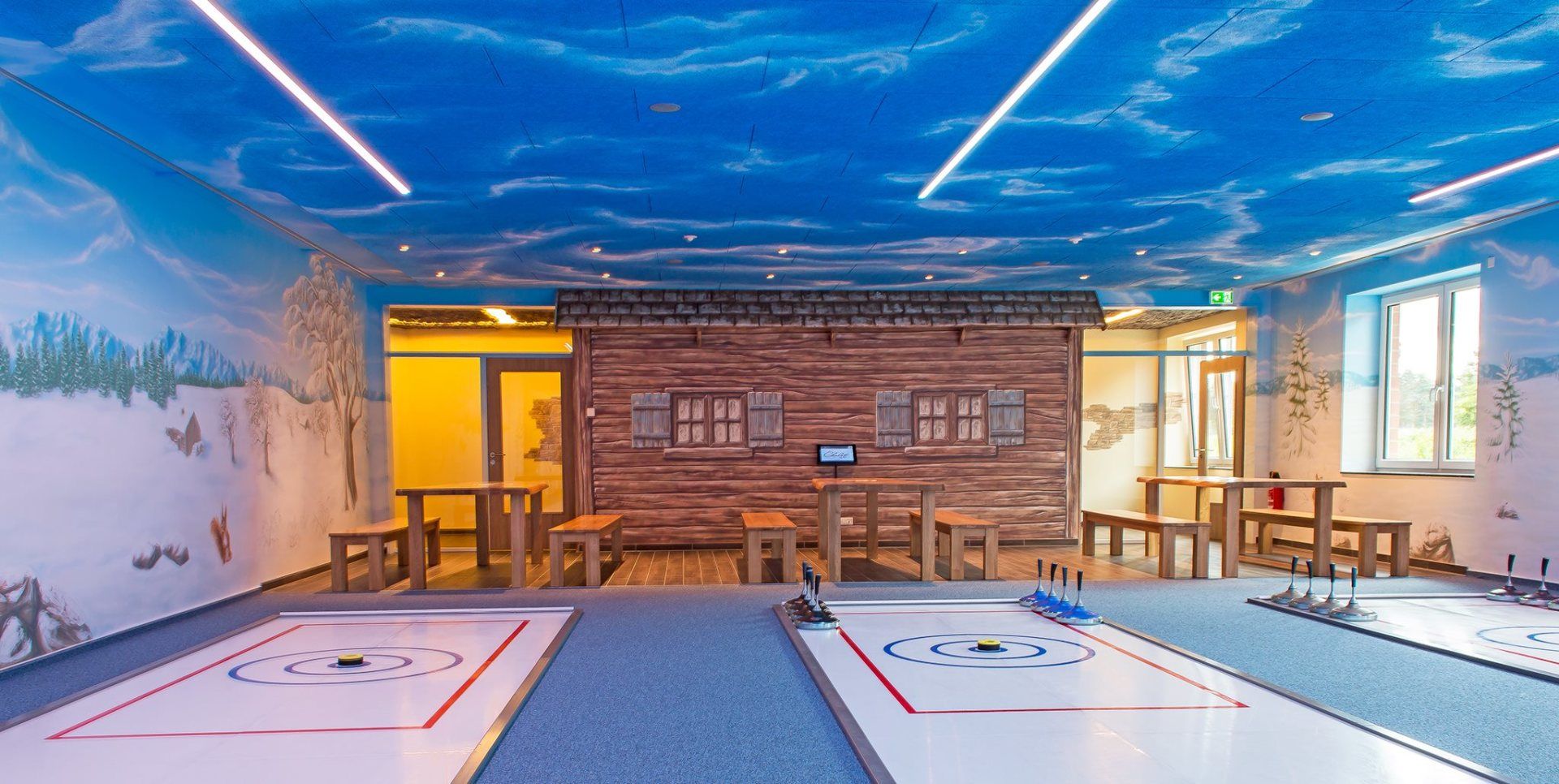 Auf unseren 3 Eisstockbahnen in unserem Gebäude können bis zu 24 Personen gleichzeitig Wintersport hautnah erleben. Jede Bahn ist für bis zu 8 Spieler vorgesehen. Ein tolles Erlebnis für Jung und Alt. Egal ob Familienfeier, Firmenfest, Junggesellenabschiede, oder einfach mal einen schönen Abend mit Freunden genießen. Hier sind Sie richtig. Spielanleitungen und Ergebnislisten liegen aus, bei Fragen stehen wir Ihnen gerne zur Verfügung. Kosten je Bahn und Stunde 29.00 €